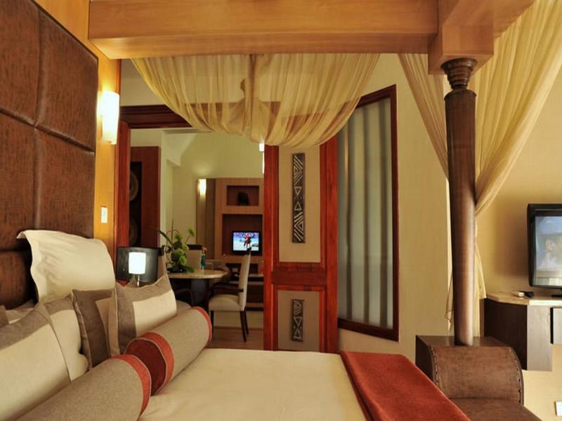 Für angenehmes Raumklima in den Zimmern sorgen eine Klimaanlage und ein Ventilator. Die Gäste können den Gartenblick von Balkon oder Terrasse genießen. Die Zimmer verfügen über ein Doppelbett und ein Sofabett. Außerdem sind ein Safe, eine Minibar und ein Schreibtisch verfügbar. Eine Tee-/Kaffeemaschine zählt ebenfalls zur Standardeinrichtung. Verschiedene Kommunikations- und Unterhaltungsmöglichkeiten werden durch die komfortable Ausstattung mit einem Telefon, einem TV-Gerät und WiFi (ohne Gebühr) gewährleistet. Im Badezimmer – ausgestattet mit einer Dusche – ist ein Haartrockner vorhanden. Als Besonderheit genießen die Gäste in den Badezimmern Kosmetikartikel und eine Auswahl an Handtüchern. Es sind auch rollstuhlgerechte Zimmer mit barrierefreiem Bad verfügbar. Die Unterbringung bietet Familien- und Nichtraucherzimmer.