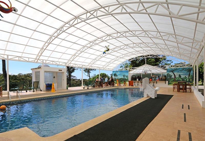Innen- und Außenpools eignen sich hervorragend für regelmäßiges Aquatraining und aktive Erholung. Erfrischende Getränke an der Poolbar und wohlige Entspannung im Whirlpool bringen alle Wasserratten in die beste Stimmung. Eine Sonnenterrasse lädt zum Verweilen ein. Im Freizeitbereich bietet das Haus neben Tischtennis, Billard, einem Spa, einer Sauna, Massage-Anwendungen und Wandern außerdem kostenpflichtig Reiten an.