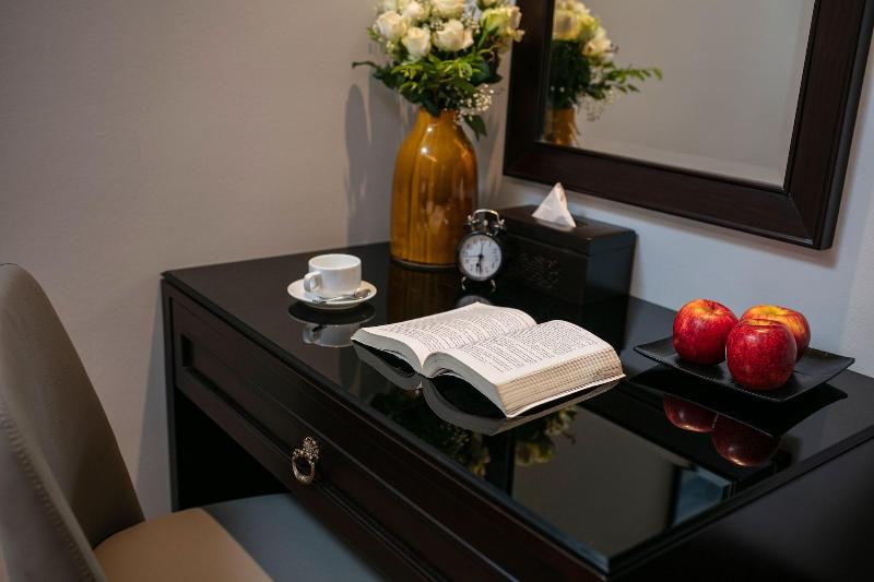 Für angenehmes Raumklima in den Zimmern sorgt eine Klimaanlage. Die Zimmer verfügen über ein Doppelbett und ein Sofabett. Zustellbetten können angefordert werden. Die Ausstattung der Zimmer umfasst einen Schreibtisch und WiFi (ohne Gebühr). Das Haus bietet Familien- und Nichtraucherzimmer.