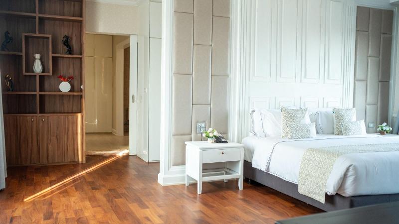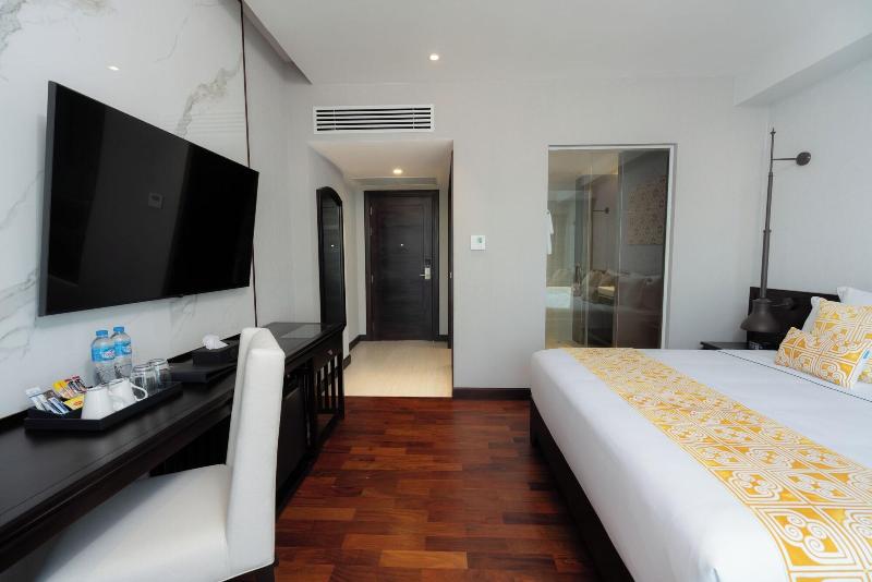 Eine Klimaanlage sorgt in den Zimmern für ein behagliches Raumklima. Die Zimmer verfügen über ein Doppelbett und ein Sofabett. Außerdem sind ein Safe und ein Schreibtisch verfügbar. Eine Tee-/Kaffeemaschine zählt ebenfalls zur Standardeinrichtung. Verschiedene Kommunikations- und Unterhaltungsmöglichkeiten werden durch die komfortable Ausstattung mit einem Telefon, einem Flachbildschirmfernseher, einem Wecker und WiFi (ohne Gebühr) gewährleistet. Im Badezimmer, ausgestattet mit einer Dusche, sind ein Haartrockner und Bademäntel vorhanden. Als Besonderheit genießen die Gäste in den Badezimmern Kosmetikartikel und eine Auswahl an Handtüchern. Das Haus bietet Familien- und Nichtraucherzimmer.