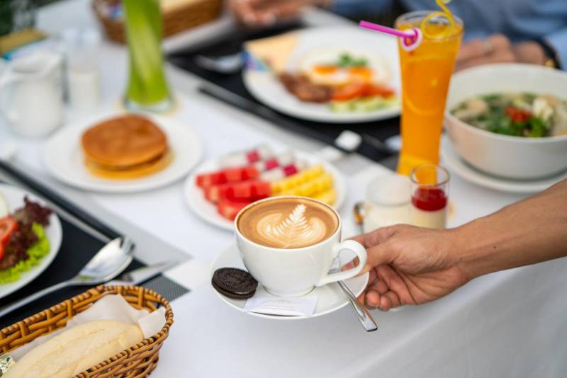 Die gastronomischen Einrichtungen umfassen ein Restaurant, ein Café und eine Bar. Täglich werden ein reichhaltiges Frühstücksbuffet und Mittagessen serviert. Diätgerichte und Kindermenüs werden auf Wunsch zubereitet. Darüber hinaus stellt das Haus spezielle Verpflegungsangebote bereit.