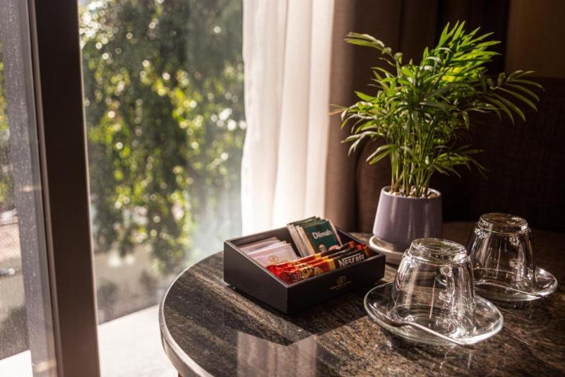 Für angenehmes Raumklima in den Zimmern sorgt eine Klimaanlage. Die Zimmer verfügen über ein Kingsizebett und ein Sofabett. Zustellbetten können angefordert werden. Außerdem sind ein Safe, eine Minibar und ein Schreibtisch verfügbar. Eine Tee-/Kaffeemaschine zählt ebenfalls zur Standardeinrichtung. Eine Hosenpresse ist für den zusätzlichen Komfort der Gäste verfügbar. Darüber hinaus sind ein Telefon, ein TV-Gerät, ein Wecker und WiFi vorhanden. Zu den Vorzügen der Zimmer gehören Hausschuhe. Im Badezimmer, mit einer Dusche ausgestattet, stehen für die Gäste ein Haartrockner und ein Telefon bereit. Als Besonderheit genießen die Gäste in den Badezimmern Kosmetikartikel und eine Auswahl an Handtüchern. Die Unterbringung bietet Familien- und Nichtraucherzimmer.