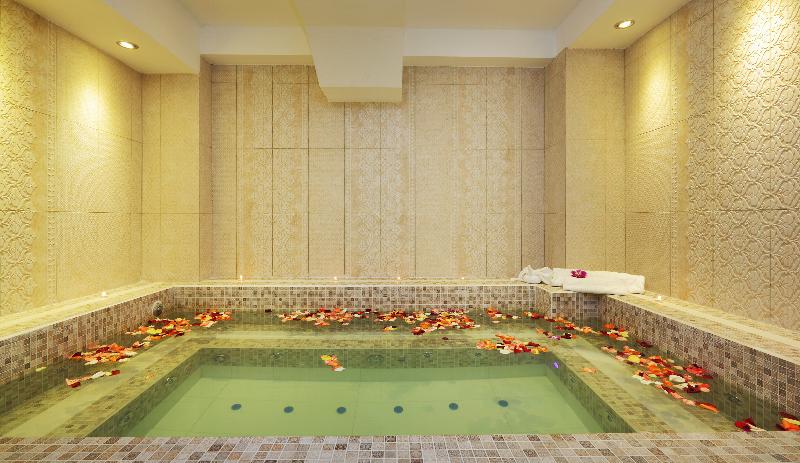 Der Außenpoolbereich bietet erfrischendes Badevergnügen. Bequeme Liegestühle stehen auf der Terrasse bereit. Wohlige Entspannung verspricht der Whirlpool im Badebereich. Abwechslung bieten verschiedene Angebote, darunter ein Fitnessstudio, ein Spa, eine Sauna, ein Dampfbad und Massage-Anwendungen.