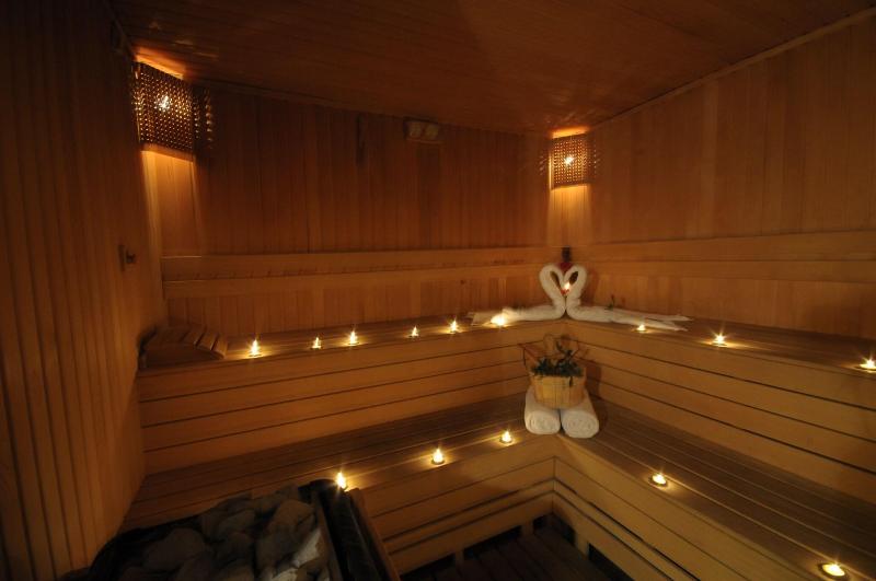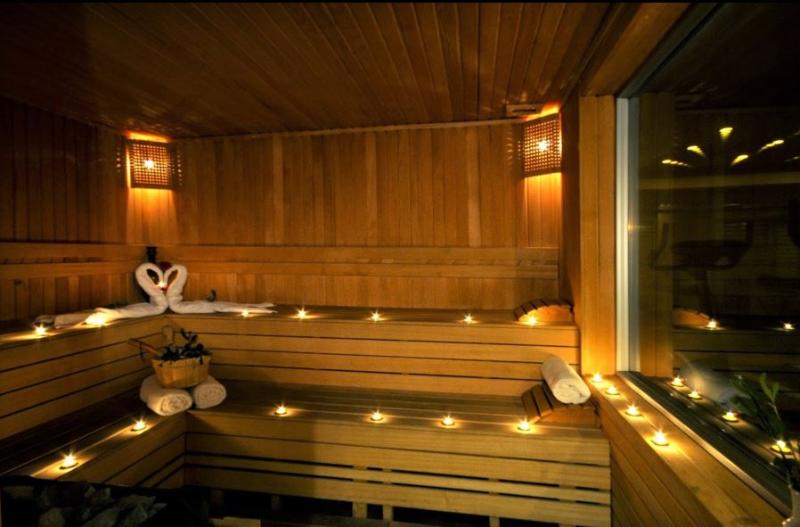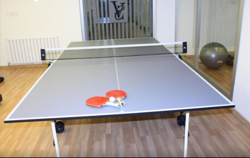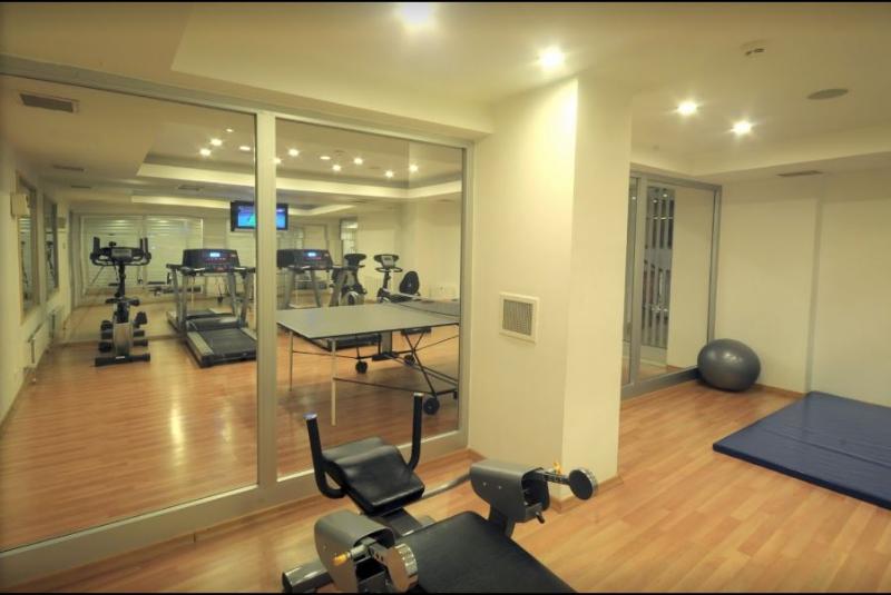 Auf der Terrasse können die Urlauber schönes Wetter genießen. Abwechslung bieten verschiedene Angebote, darunter ein Fitnessstudio, Tischtennis, Aerobic, ein Spa und eine Sauna.